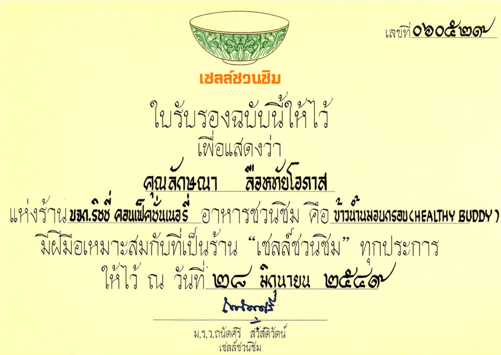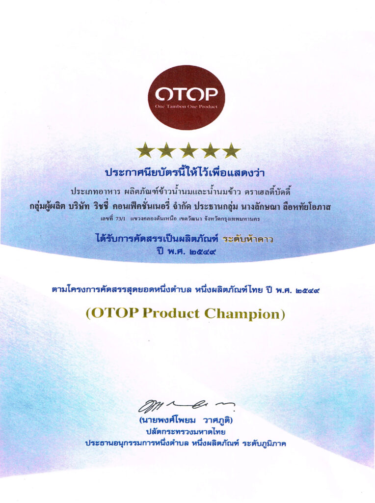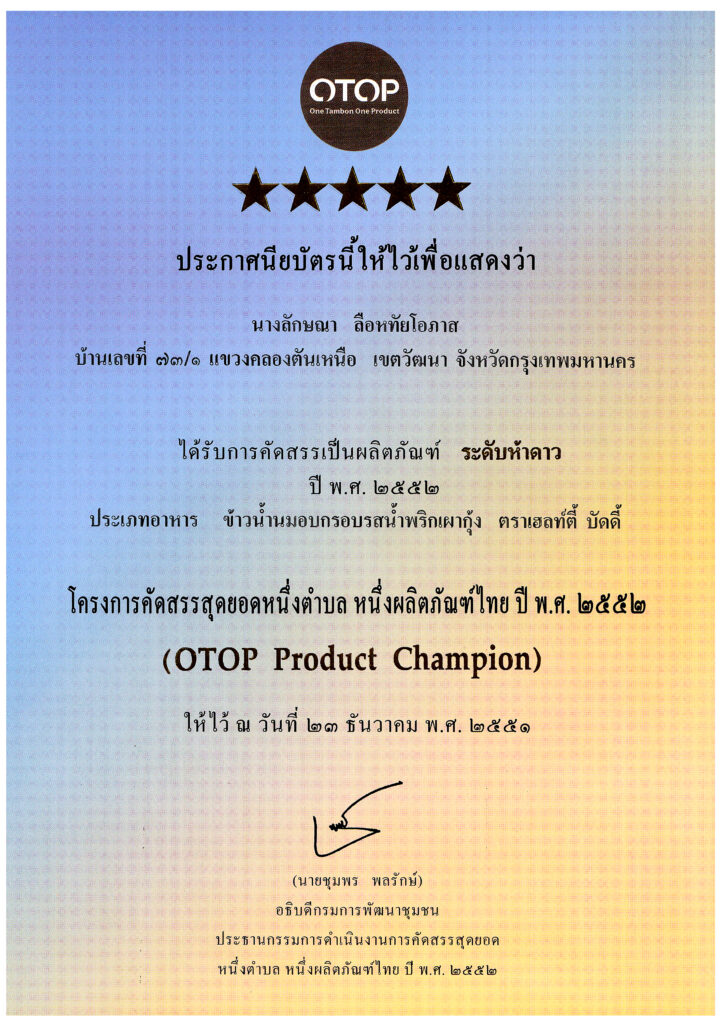 มีประสบการณ์ในการผลิตขนมมาอย่างยาวนาน มากกว่า 50 ปี เราเล็งเห็นถึงความสำคัญของอาหารเพื่อสุขภาพ และมีแนวคิดในการนำ “ข้าว” ซึ่งเป็นพืชเศรษฐกิจสำคัญของไทย มาผลิตเป็นอาหารว่างเพื่อสุขภาพ จึงคิดค้นและพัฒนาเป็นผลิตภัณฑ์ “ข้าวน้ำนมอบกรอบ” เฮลท์ตี้ บัดดี้ (Healthy Buddy) ในปัจจุบันและพัฒนาผลิตภัณฑ์ให้มีคุณภาพที่ดี เพิ่มรสชาติให้หลากหลายมากยิ่งขึ้น รวมถึงสร้างผลิตภัณฑ์ใหม่ขึ้นมาอย่างต่อเนื่อง