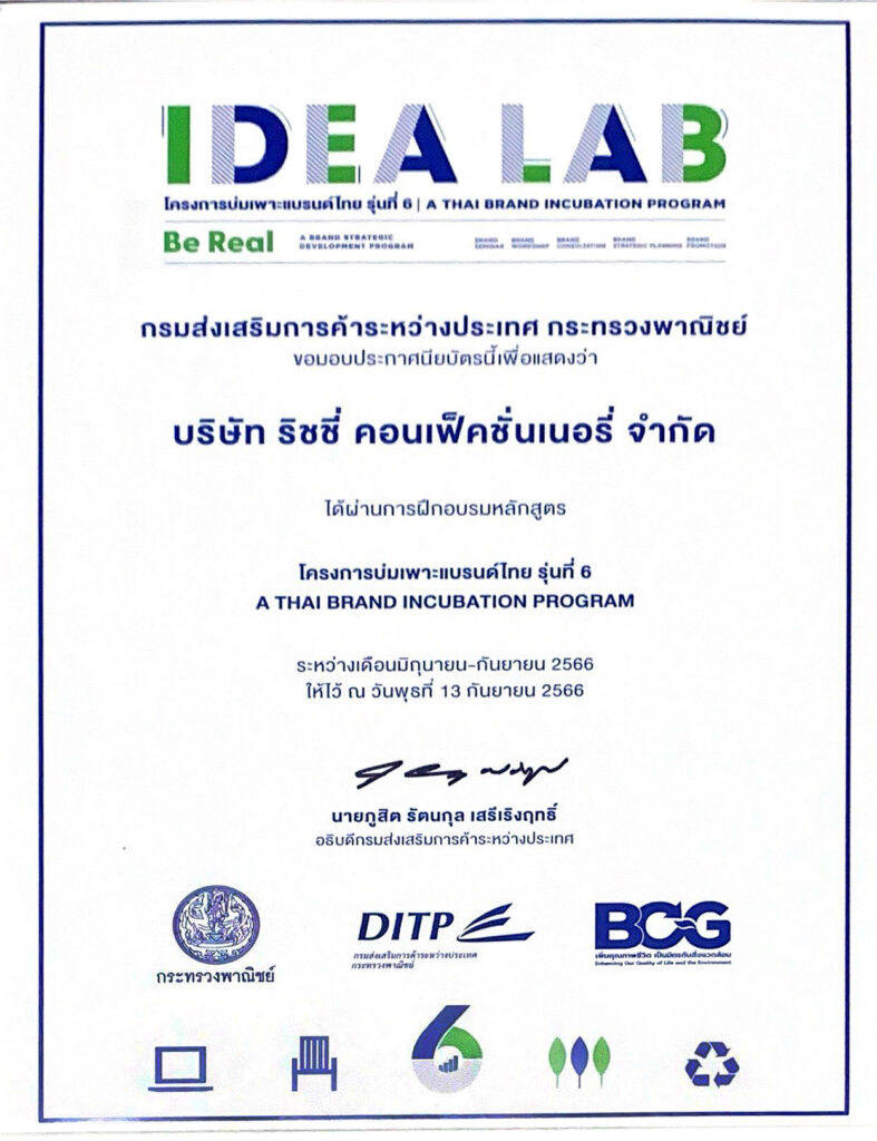 บริษัท ริชชี่ คอนเฟ็คชั่นเนอรี่ จำกัด สืบทอดมาจากรุ่นคุณพ่อ โดยใช้ชื่อว่า “โรงงานลูกกวาดเอเชีย” ก่อตั้งเมื่อปี พ.ศ. 2512 ต่อมาได้เปลี่ยนชื่อเป็น “บริษัท ริชชี่ คอนเฟ็คชั่นเนอรี่ จำกัด” ตั้งแต่ปี พ.ศ. 2538 เป็นต้นมา
